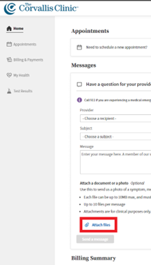 - Attachments are for clinical purposes only. Do not include images of credit cards, payment information, or other non-clinical images